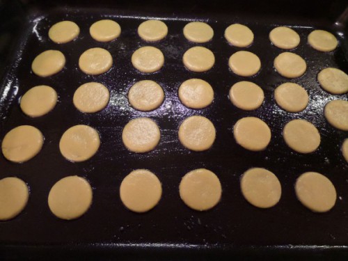 Mouku smícháme s moučkovým cukrem. Přidáme vanilkový cukr, na kousky nakrájené změklé máslo, citronovou kůru a žloutky. Zpracujeme na hladké těsto, které necháme alespoň půl hodiny odpočinout v chladničce. Těsto rozválíme na plát a vykrajujeme z něj kolečka. Rozložíme je na vymaštěný plech a pečeme při 180°C do růžova.
